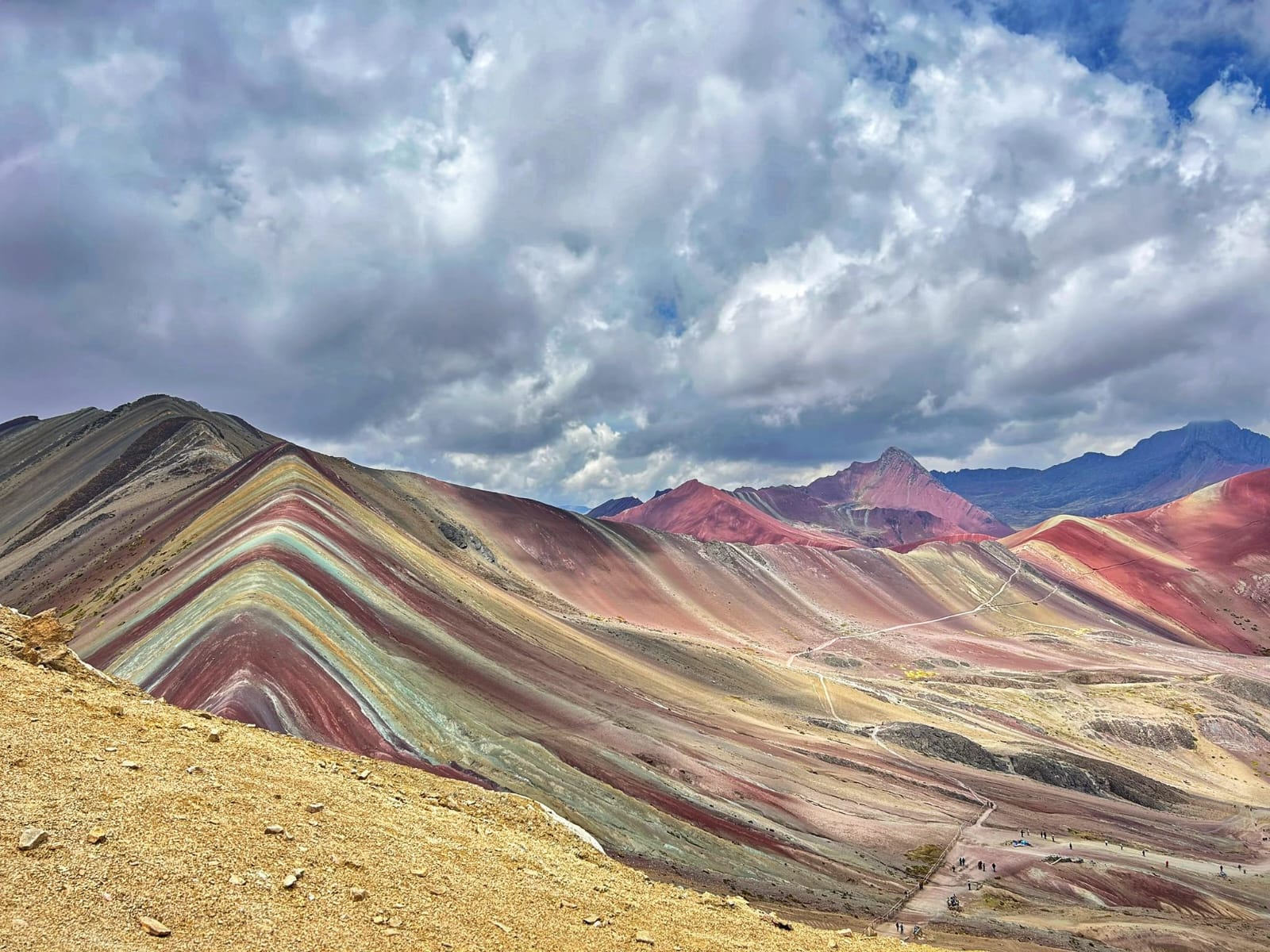 Très tôt le matin, nous nous rendons dans le district de Cusipata, pour faire un détour par la communauté de PHULAWASI PATA. C’est ici que nous commençons notre randonnée. Nous monterons progressivement de 4750 m jusqu’au premier point de vue sur la montagne colorée à plus de 5000 m d’altitude. Le chemin est une montée progressive qui s’accompagne de paysages magnifiques, de lamas et de petits lacs. L’effort en vaut la peine pour atteindre le premier point où nous aurons l’image de cette belle montagne colorée par les oxydes naturels qui se sont formés au cours de millions d’années. Afin d’avoir les meilleures vues, nous ferons un dernier effort pour atteindre 5036 m. De là, la vue est splendide sur toute la chaîne de montagnes de Vilcanota et une partie de la vallée rouge. La montagne la plus imposante est l’Ausangate, qui dépasse les 6300 m et qui est la plus haute montagne de la région.